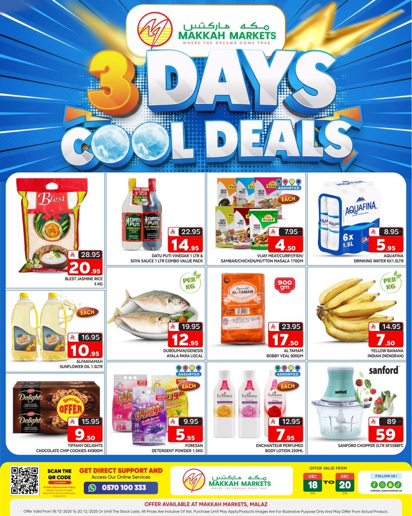 نقدم لكم اليوم احدث عروض مكة المكرمة بتاريخ الخميس 18-12-2025 و تحتوي علي حبوب الأرز الفاخر وزيوت الطهي بأنواعها إضافة إلى ماء الشرب الصحي والمنظفات المنزلية ومساحيق الغسيل كما تشمل العروض تشكيلات من البهارات والماسالا والصلصات المتنوعة إلى جانب بعض الأسماك الطازجة واللحوم المجمدة