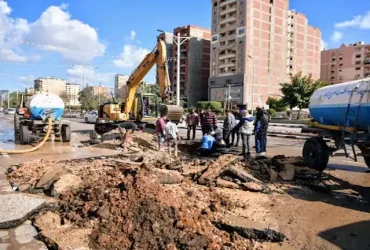كسر بالخط الرئيسي يتسبب في انقطاع المياه وتعطل المرور بالمنص