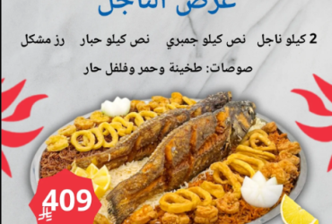 عرض الناجل من أسماك سمكوزا في جدة – 2 كيلو ناجل مع جمبري وحبار وصوصات بـ 409 ريال