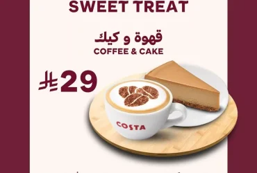 عرض كوستا كافيه: قهوة وكيك بـ 29 ريال فقط في جميع الفروع بالسعودية