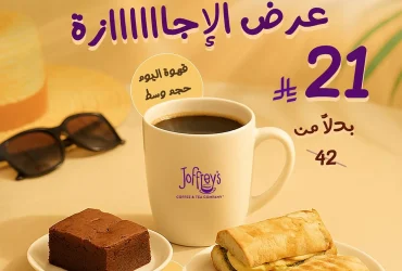 عرض الإجازة من جوفريز: قهوة اليوم مع براوني أو ساندويتش بـ 21 ريال فقط