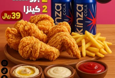 عرض الأسبوع من مطاعم حب الرمان: 2 بروستد + 2 كينزا فقط بـ 39 ريال أيام الاثنين والثلاثاء