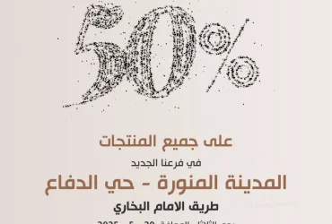خصم 50% بمناسبة افتتاح فرع عنوان القهوة الجديد في حي الدفاع بالمدينة المنورة يوم الثلاثاء 20 مايو 2025