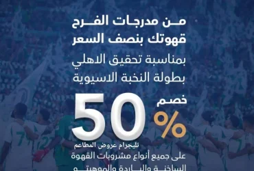 فندير كافيه يقدم خصم 50% على مشروبات القهوة احتفالًا بفوز الأهلي ببطولة النخبة الآسيوية