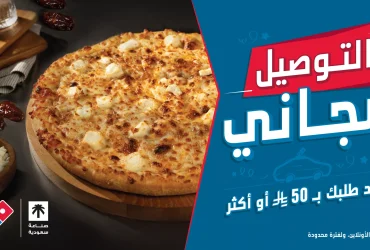 بيتزا لذيذة وتوصيل مجاني من دومينوز عند طلبك بـ 50 ريال أو أكثر