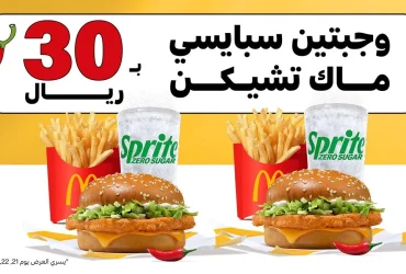 عروض مطعم ماكدونالدز السعودية علي وجبتين ماك تشيكن سبايسي الاثنين 21-10-2024