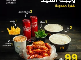 وجبة العيد من شريمبلس بـ 99 ريال فقط لفترة محدودة – عرض مميز يشمل الربيان والمشروبات والأرز والمزيد