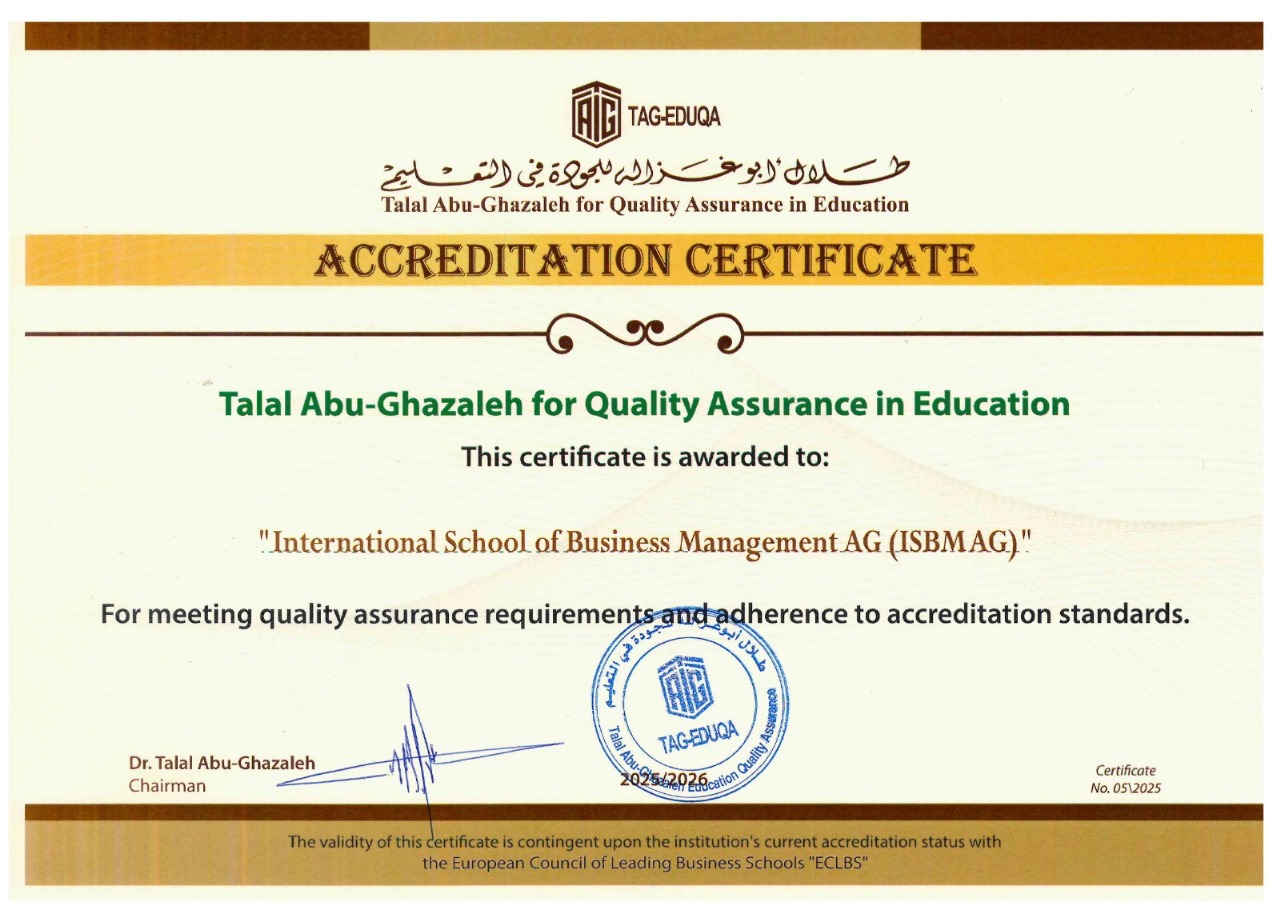 أعلنت الجامعة السويسرية الدولية (SIU)، إحدى المؤسسات التعليمية الرائدة ضمن شبكة التعليم الدولي متعددة الفروع، عن حصولها رسميًا على اعتماد أبوغزالة لضمان الجودة في التعليم (TAG‑EDUQA)، الذي يُعد من أرفع وأبرز هيئات الاعتماد والجودة التعليمية في العالم العربي. وقد جاء هذا الاعتماد وفقًا للمعايير الصارمة المعتمدة من قبل المنظمة العربية لضمان الجودة في التعليم (AROQA)، مما يعكس التزام الجامعة العميق والمستمر بتعزيز جودة التعليم العالي والارتقاء به إلى مصاف المعايير العالمية.