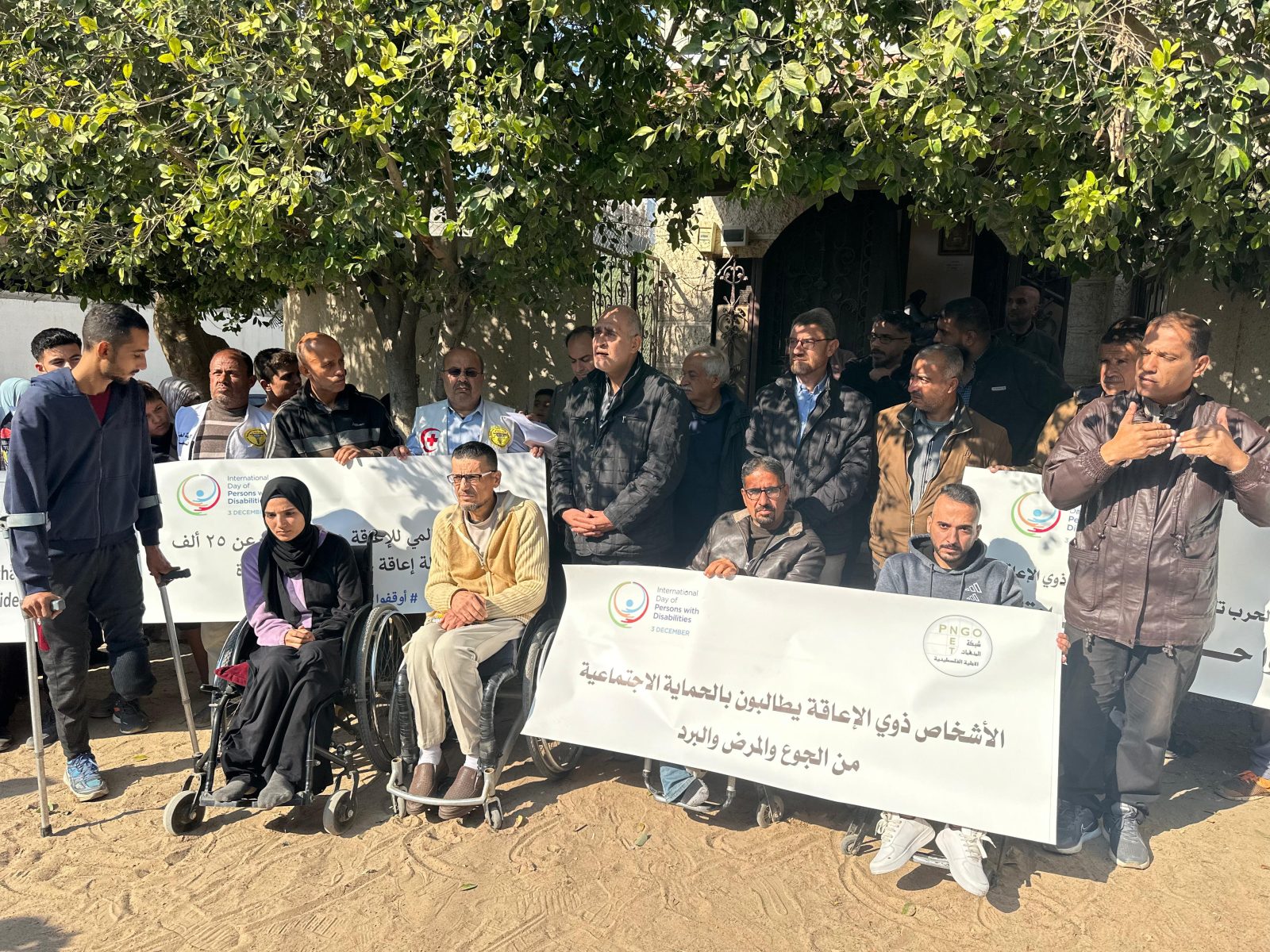 طالب العشرات من الأشخاص ذوي الإعاقة في قطاع غزة وممثلو المنظمات الأهلية العاملة في مجال تأهيل الأشخاص ذوي الإعاقة بضرورة توفير الحماية الاجتماعية من الفقر والمرض والجوع للشعب الفلسطيني، وناشدو بالوقف الفوري لجرائم الإبادة بحق الشعب الفلسطيني وانتهاك القانون الدولي لحقوق الإنسان وحقوق الأشخاص ذوي الإعاقة، و أكدوا على أهمية إعادة فتح المعابر من أجل تمكين المرضى والجرحى وذوي الإعاقة من السفر لتلقي العلاج والضغط على سلطات الاحتلال من أجل السماح بإدخال المساعدات الإنسانية والمستلزمات الطبية والأدوات المساعدة.
