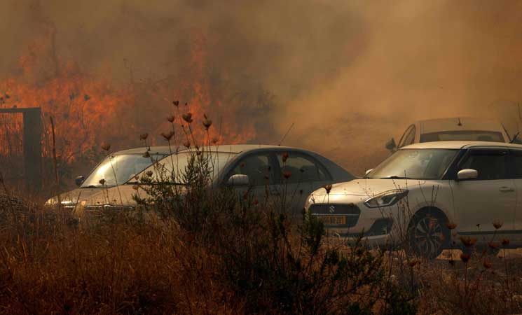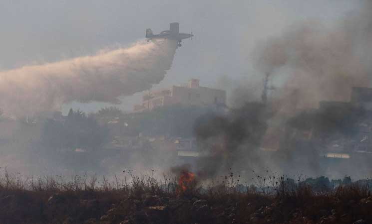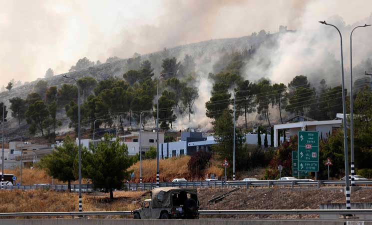 حرائق في مستوطنة روش بينا بعد إطلاق صواريخ من جنوب لبنان