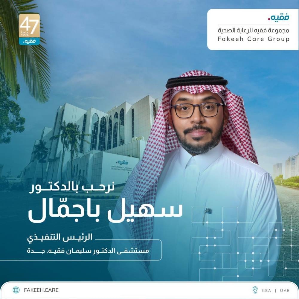 أعلنت مجموعة فقيه للرعاية الصحية عن تعيين الدكتورسهيل سالم باجمّال رئيسًا تنفيذيًّا لمستشفى الدكتور سليمان فقيه بجدة.