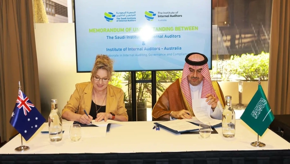 وقّع رئيس الديوان العام للمحاسبة، رئيس مجلس إدارة الجمعية السعودية للمراجعين الداخليين الدكتور حسام العنقري، مذكرة تفاهم مع المعهد الأسترالي للمراجعين الداخليين، ممثلًا برئيس مجلس إدارة المعهد ترش هايد، وذلك بمدينة سيدني الأسترالية.