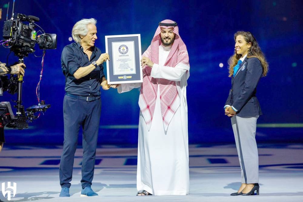 وجاء هذا التكريم خلال حفل تتويج فريق الهلال بلقب دوري روشن السعودي للمحترفين موسم 20232024 على أرضية ملعب «المملكة أرينا»، حيث تسلم فهد بن نافل رئيس شركة الهلال الشهادة المقدمة من موسوعة غينيس، لوصول الفريق الهلالي إلى هذا الرقم في العالم .