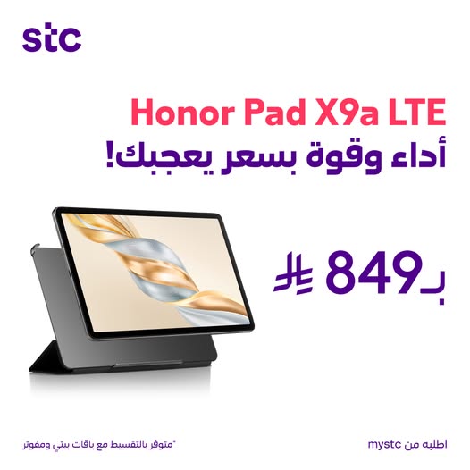 عرض STC على تابلت Honor Pad X9a LTE بسعر 849 ريال فقط