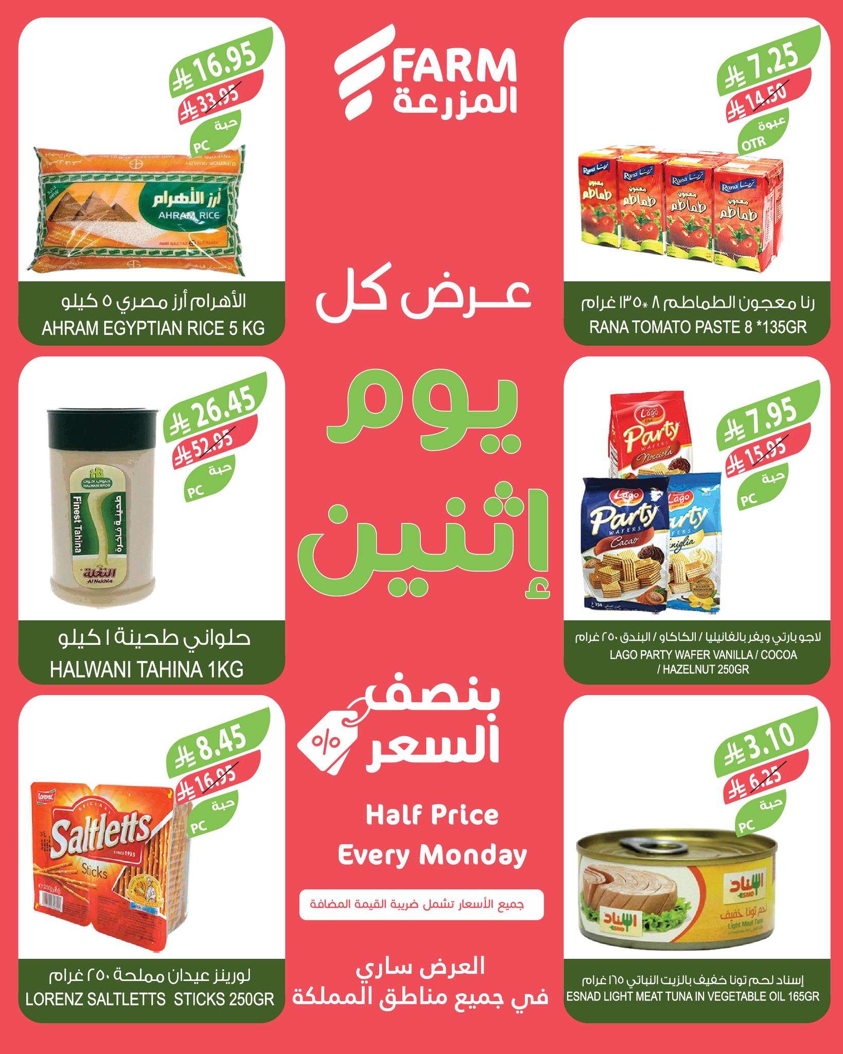 نقدم لكم عروض أسواق المزرعة الطازج الاثنين 23 يونيو 2025 تقدم لك مجموعة مختارة من المنتجات الغذائية عالية الجودة بنصف السعر فقط ليوم واحد تضم العروض أرز مصري ومعجون الطماطم والطحينة بالإضافة إلى الوجبات الخفيفة مثل عيدان اللورينز والوايفر المحشو والتونة المعلبة