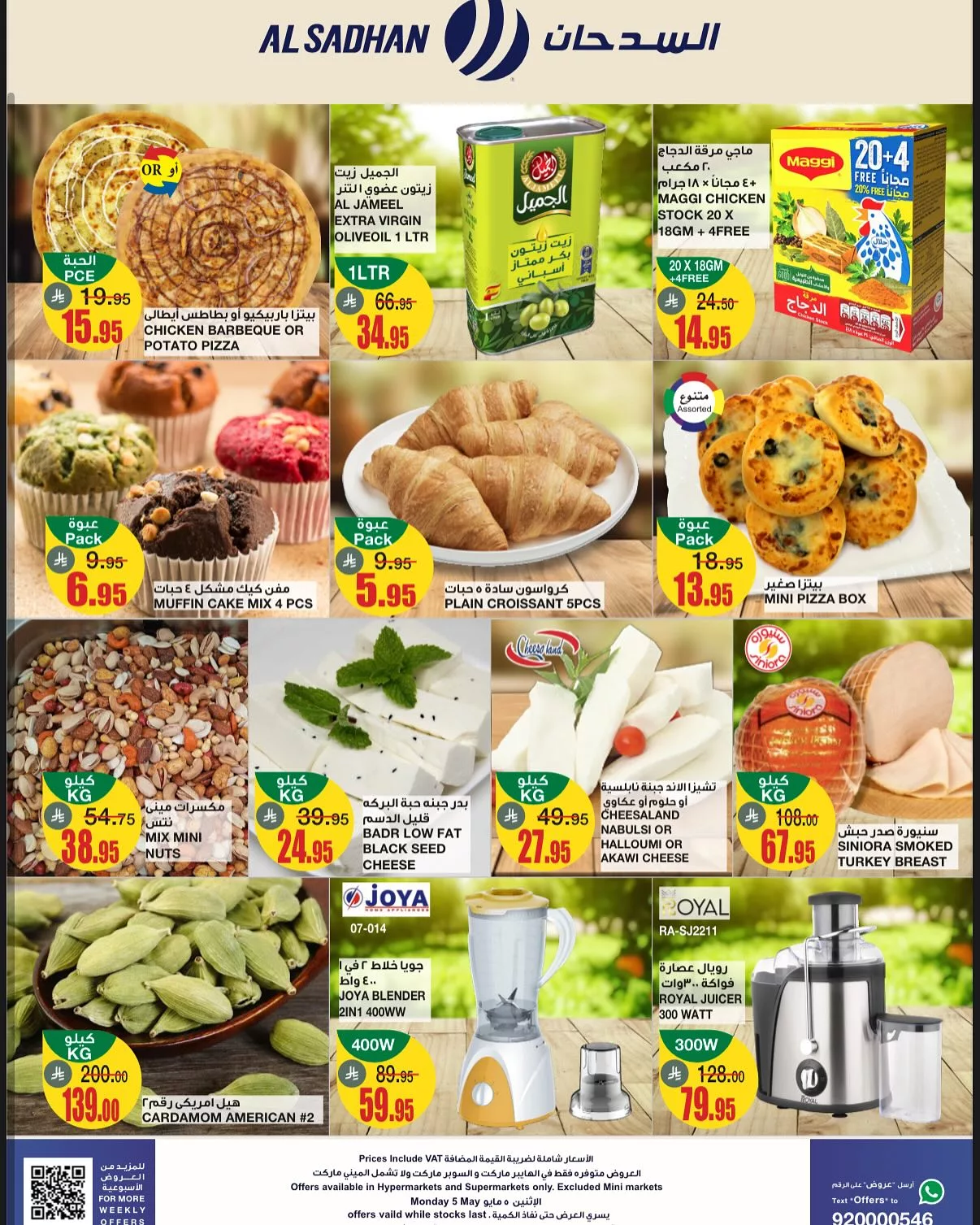 عروض السدحان الطازج لا تقتصر على المواد الغذائية فقط بل تشمل أيضًا المخبوزات الطازجة مثل الكرواسون والمافن والبيتزا بالإضافة إلى منتجات أساسية كالزيت والمرقة والجبن والمكسرات كما تميزت العروض هذا الأسبوع بخصومات ملحوظة على أجهزة المطبخ مثل الخلاط والعصارة