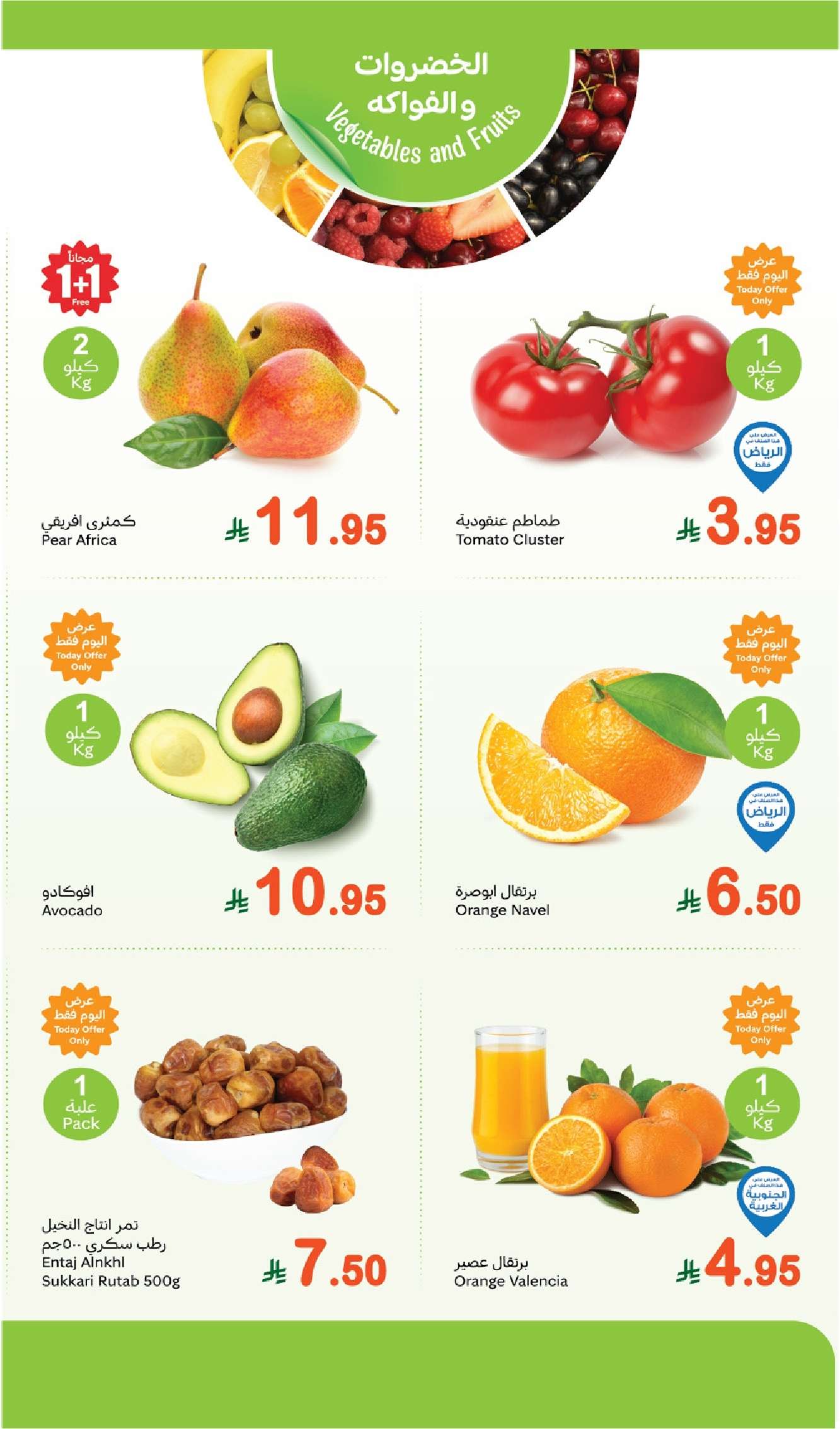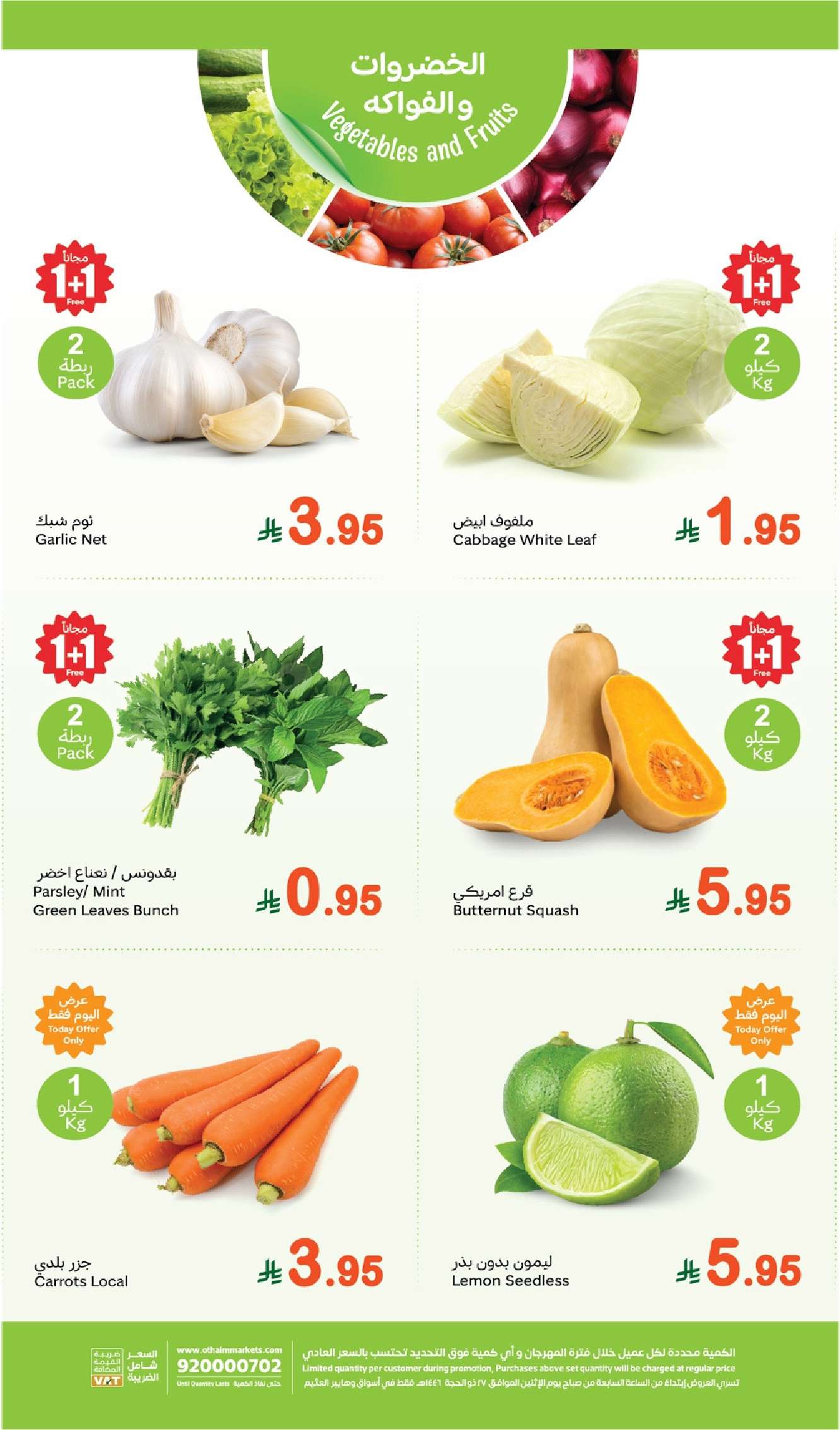 عروض العثيم الطازج تشمل أيضا اليوم خصومات على خضروات مختارة مثل الملفوف الأبيض والثوم والبقدونس والجزر المحلي والليمون بدون بذر بالإضافة إلى فواكه مميزة مثل الكمثرى والأفوكادو والبرتقال مما يمنح العملاء فرصة ذهبية لتعبئة سلتهم بأفضل المنتجات بأقل التكاليف في يوم واحد فقط
