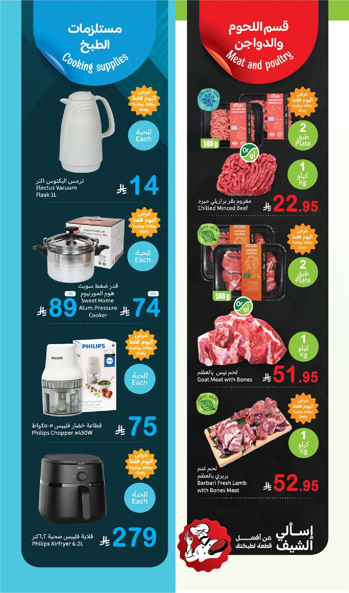 عروض العثيم هذا الاسبوع تشمل أيضا باقة واسعة من الخضروات الطازجة مثل الملفوف الأبيض والفلفل البارد بألوانه والفلفل الحار الأخضر والبطاطس والخس الآيس بيرج والجزر المستورد كما تضم العروض قسم اللحوم المتنوعة مثل المفروم البقري ولحم التيس والغنم الطازج إلى جانب مستلزمات الطبخ