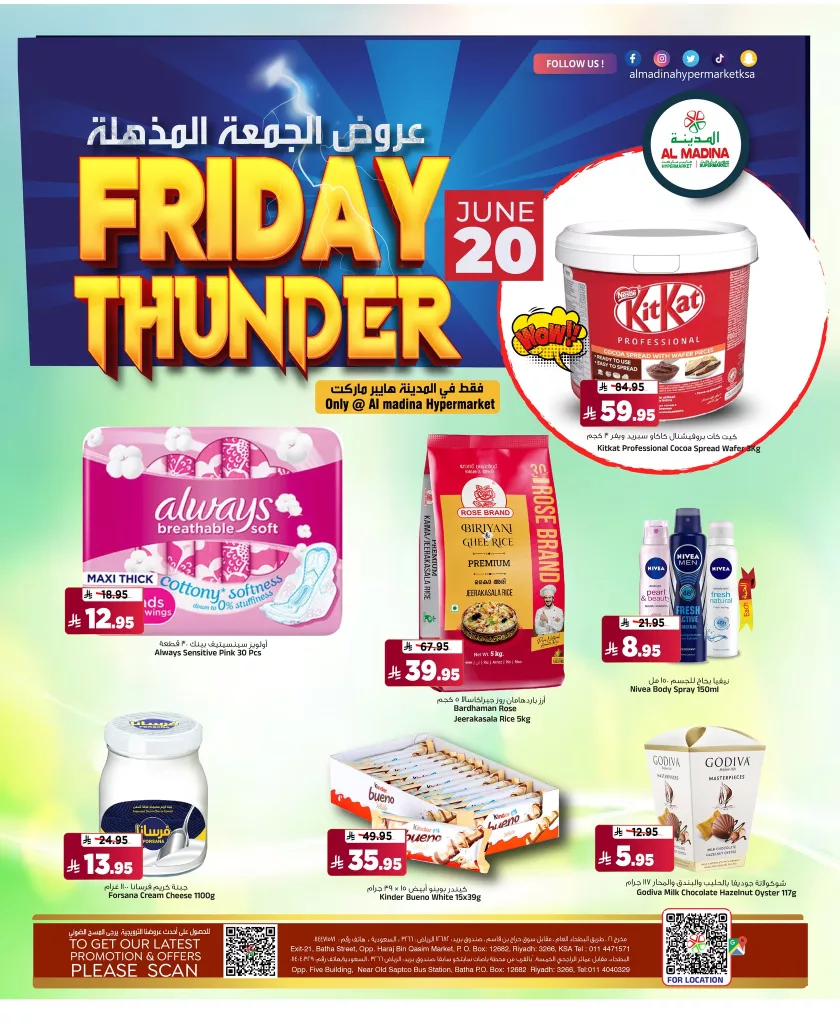 عروض المدينة هايبر ماركت الجمعة 20 يونيو 2025 تقدم مجموعة واسعة من المنتجات الأساسية التي يحتاجها كل منزل تشمل المواد الغذائية والحلويات والعناية الشخصية بخصومات مغرية تشمل منتجات مثل الشوكولاتة والأرز والفوط النسائية ومستحضرات الجسم مما يجعلها فرصة مثالية للتوفير والتسوق الذكي