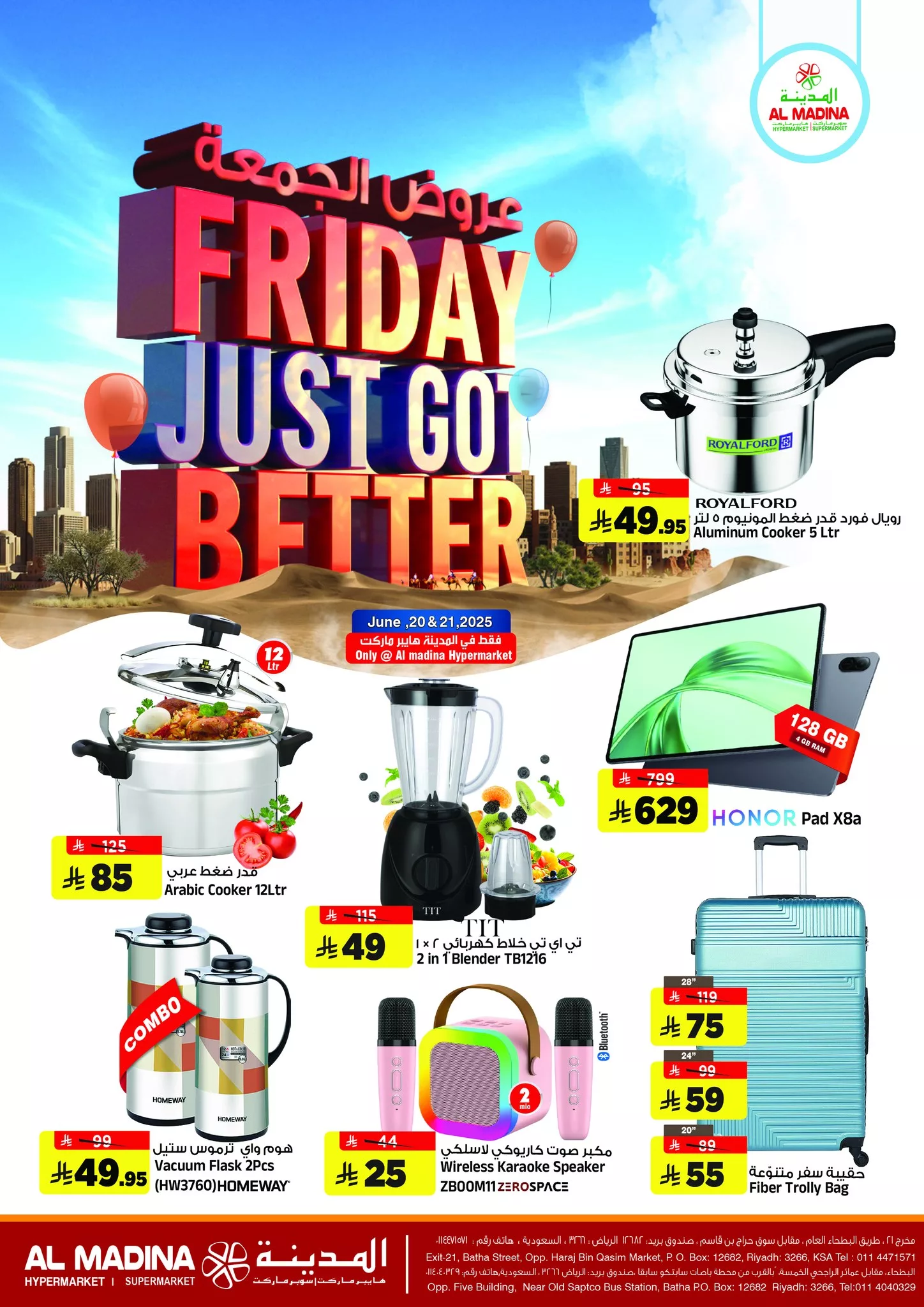 عروض الجمعة المذهلة لا تتوقف عند المواد الاستهلاكية بل تمتد لتشمل الخضار والفواكه الطازجة بجودة ممتازة وألوان جذابة إضافة إلى الأجهزة المنزلية مثل قدور الضغط والخلاطات والأجهزة الإلكترونية والملابس العائلية والبطانيات باقل الاسعار