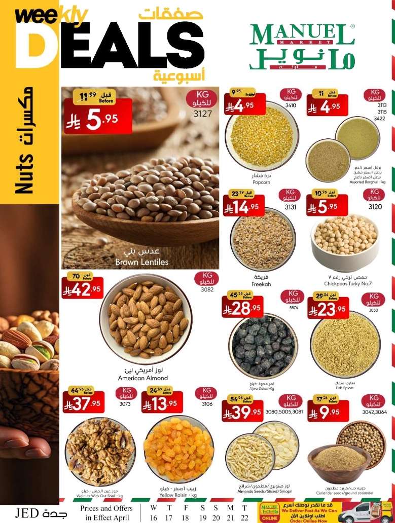 عروض مانويل جدة الأربعاء 16 أبريل 2025 تشمل تخفيضات على المنتجات المجمدة مثل الروبيان والفيليه والبطاطس الجاهزة للقلي بالإضافة إلى عروض على منتجات الألبان المختلفة مثل الجبن القريش والموزاريلا والزبدة الطبيعية والحليب طويل الأجل والمربى والعصائر بنكهات الفواكه ومجموعة من المعلبات الغذائية الأساسية