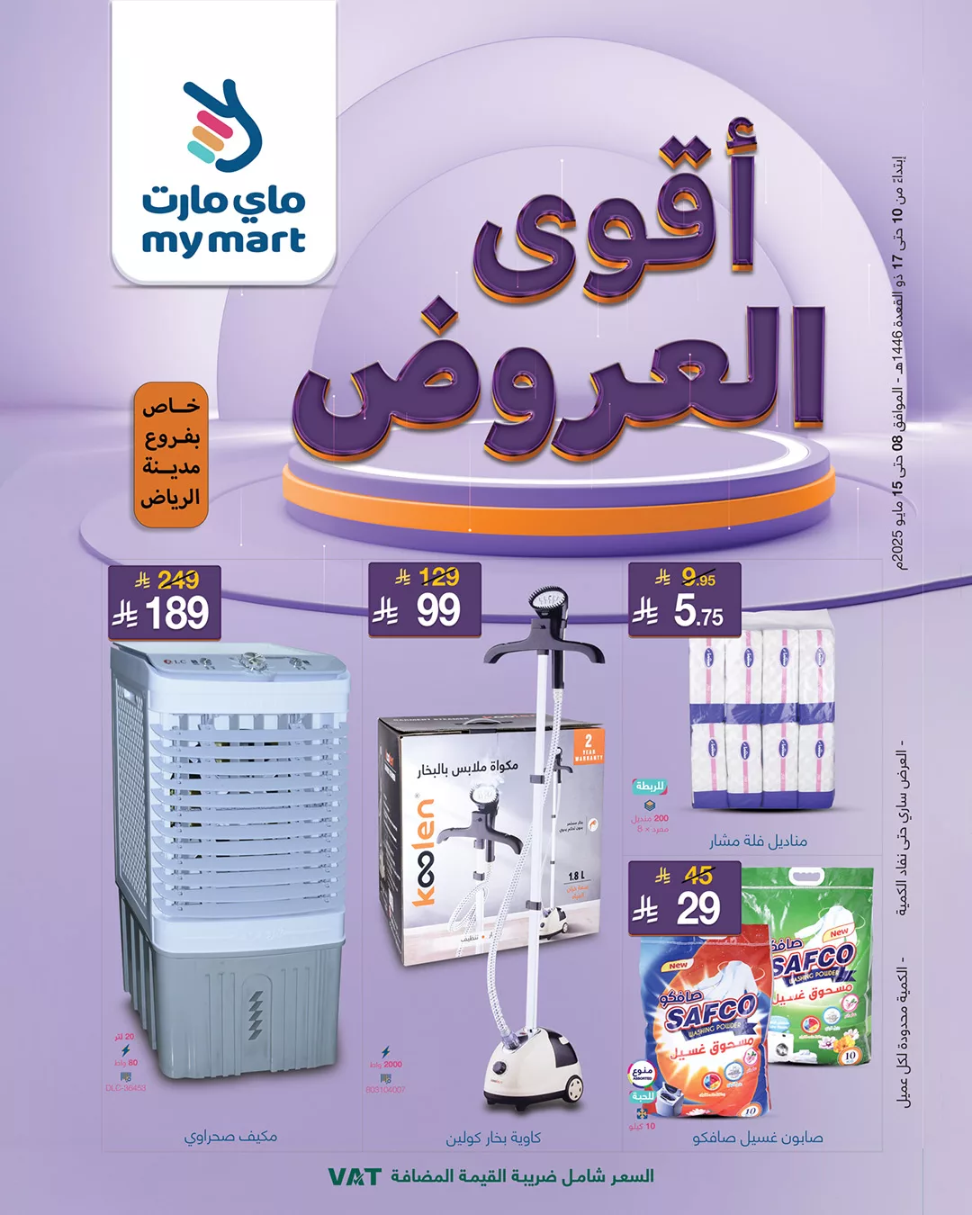 - تنتهي العروض يوم الخميس 15 مايو 2025 – 17 ذو القعدة 1446هـ