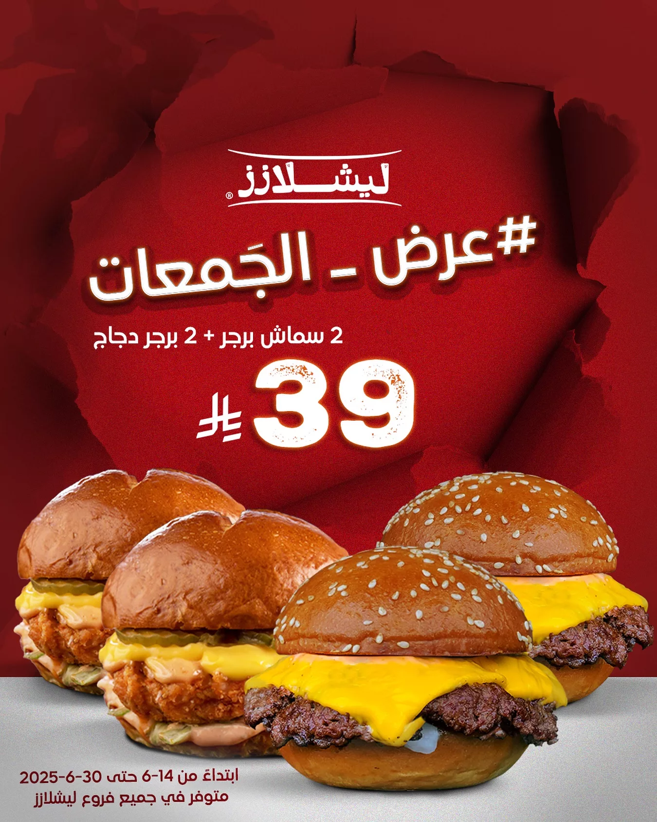 العرض مثالي لمحبي البرجر بأنواعه، حيث يقدم لك مزيجًا من البرجر الكلاسيكي بلحم السماش الشهي، وبرجر الدجاج المقرمش والمميز، مع الخبز الطري والجبنة الذائبة والتتبيلة الخاصة التي تشتهر بها فروع ليشلازز
