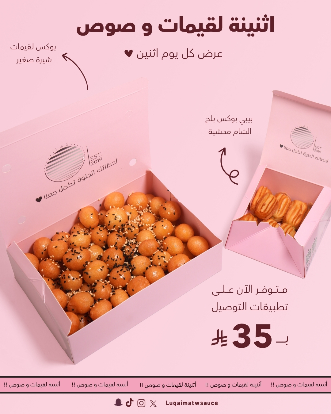 عرض اثنينية لقيمات وصوص الذي يقدم كل يوم اثنين ليضيف لمسة من الحلاوة على بداية الأسبوع هذا العرض الرائع من لقيمات وصوص يجمع بين الطعم الفاخر والتوفير ويأتيكم بتجربة فريدة لا تفوت لعشاق اللقيمات وبلح الشام تابعوا الافضل لدينا دائما