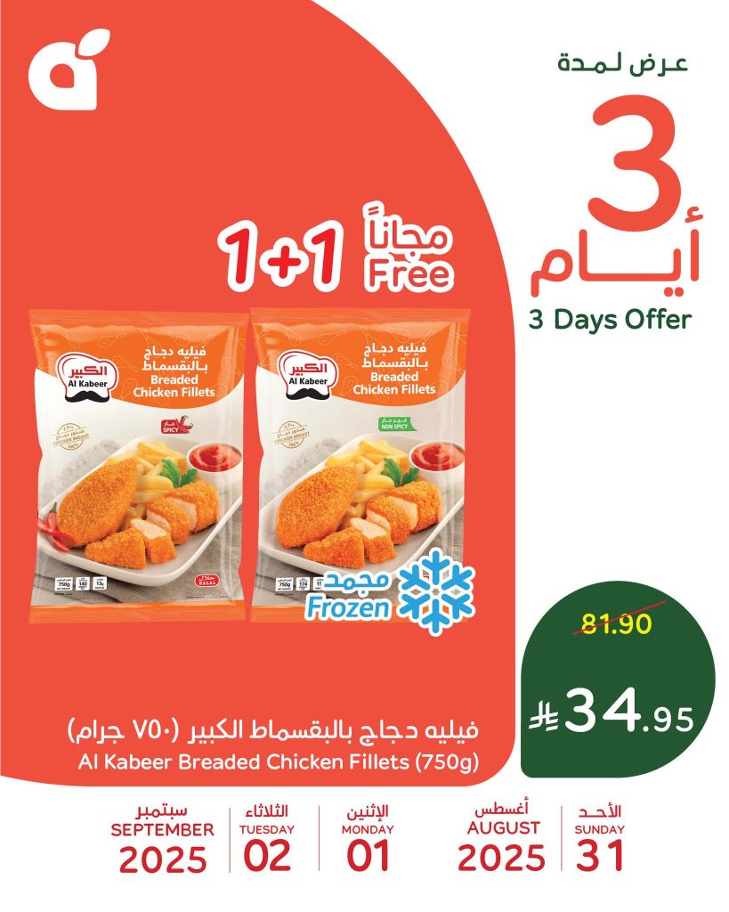 - فيليه دجاج بالبقسماط الكبير (750 جرام) – 34.95 ريال (1+1 مجانًا، بدلاً من 81.90)
