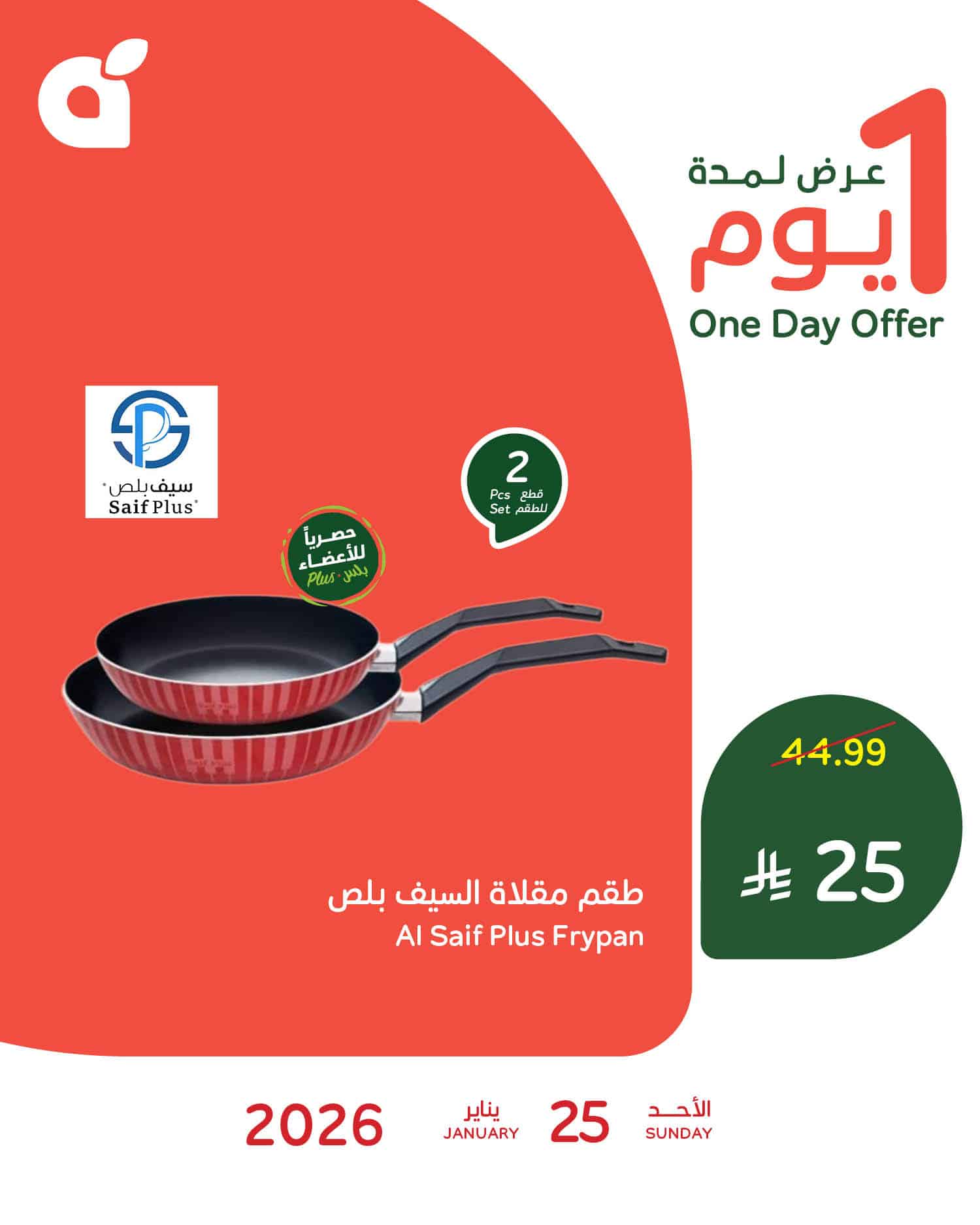 عروض بنده اليوم الاحد 25 يناير 2026 الموافق 6 شعبان 1447هـ بتوفر ليكم اليوم اقوي العروض علي تجهيزات رمضان 2026 من خلال تقديم طقم مقلاة السيف بلص و يتكون من قطعتين باسعار مميزة في عرض حصري متاح اليوم فقط و يمكنكم متابعة موقعنا عروض توداي ليصلكم كل جديد عن عروض رمضان 1447هـ