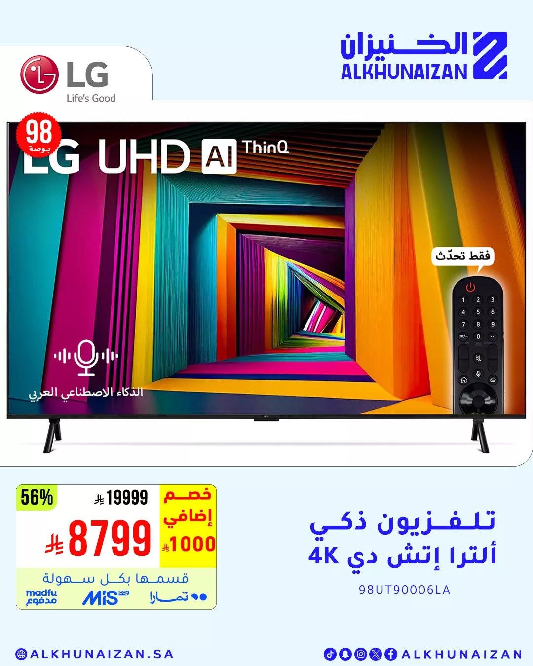- الشاشة: فائقة الدقة 4K UHD مع تقنية AI ThinQ الذكية