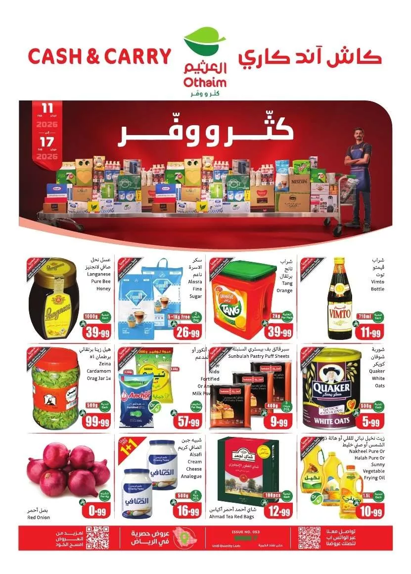 عروض العثيم الاسبوعية الخميس 12-2-2026 الموافق 24 شعبان 1447هـ بتقدم ليكم المنتجات التموينية من سكر وزيت وشاي ومشروبات مع توفر الخضروات والفواكه الطازجة والدجاج المجمد