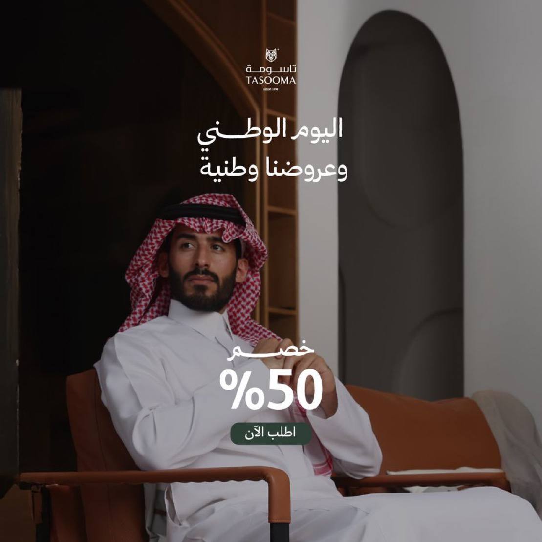 - بمناسبة اليوم الوطني السعودي 95 تقدم تاسومة خصماً استثنائياً يصل إلى 50% على منتجاتها المختارة