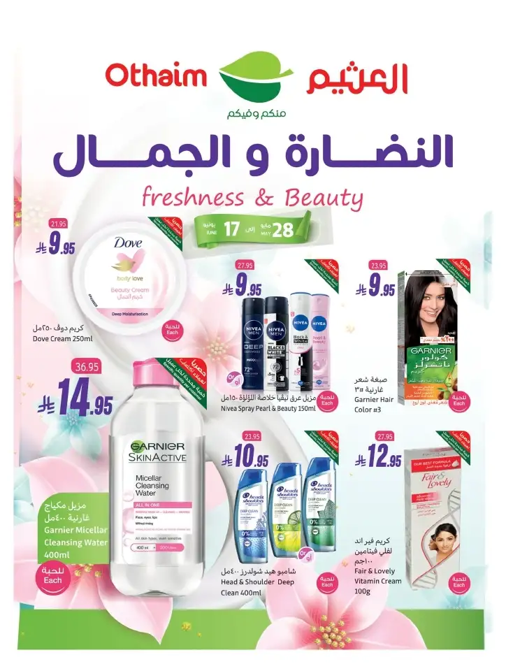عروض العثيم الخميس 5-6-2025 تقدم تشكيلة مميزة من منتجات العناية الشخصية والتجميل التي تلبي احتياجات كل أفراد الأسرة بداية من كريمات العناية بالبشرة من علامات مثل دوف وفير اند لفلي إلى بخاخات ومزيلات العرق من نيفيا وأكس وريكسونا كما تشمل العروض خيارات واسعة من شامبوهات الشعر الت