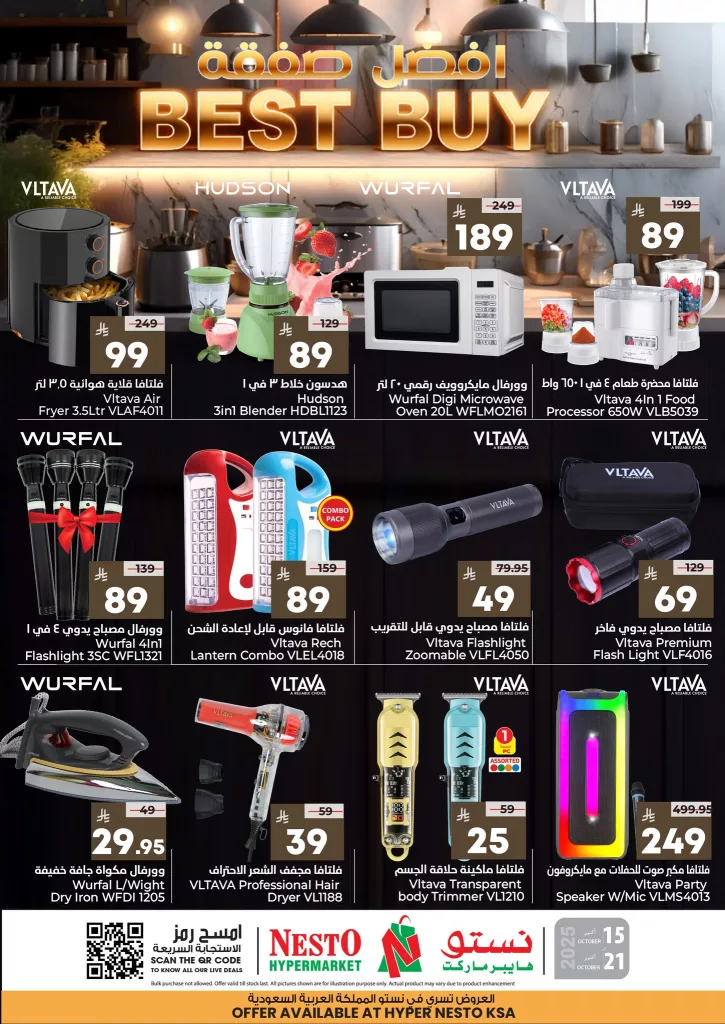 افضل الصفقات في عروض نستو السعودية الخميس 24 ربيع الثاني 1447هـ تضم تشكيلة واسعة من الأجهزة المنزلية الكهربائية مثل القلاية الهوائية والخلاط وأفران الميكروويف الحديثة بالإضافة إلى محضرات الطعام و تركز كمان على الأدوات المنزلية الصغيرة تابعونا علي موقعكم عروض توداي لمعرفة كل جديد عن عروض السعودية