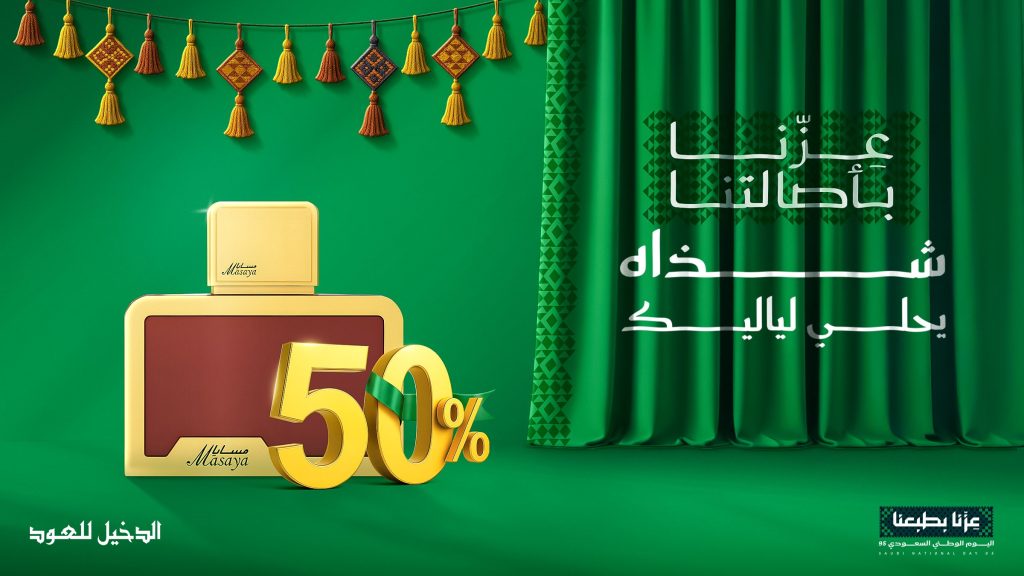 بمناسبة اليوم الوطني السعودي 95 أطلقت شركة الدخيل للعود عرضًا مذهلًا على أحد أشهر عطورها “مسايا الأحمر” تحت شعار “شذاه يحلي لياليك”، بخصم يصل إلى 50% مما يجعله أحد أبرز العروض في هذه المناسبة الوطنية