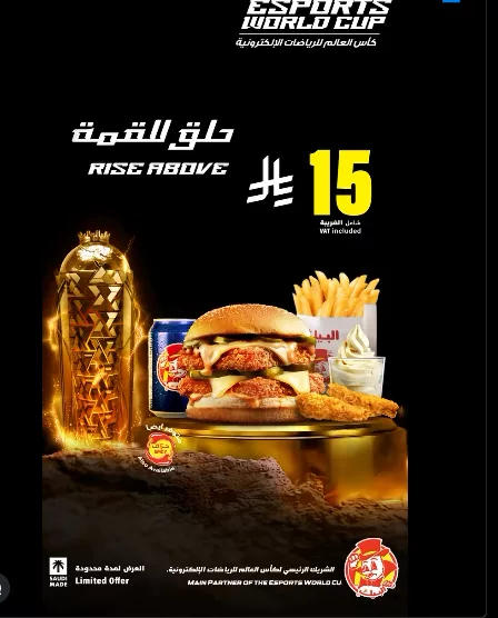 وفي إطار الشراكات العالمية والمناسبات الرياضية الكبرى، أطلقت البيك عرضاً خاصاً بمناسبة كأس العالم للرياضات الإلكترونية تحت شعار “حلق للقمة”، والذي يجمع بين النكهة والمغامرة بسعر مغرٍ لا يتجاوز 15 ريال فقط شامل الضريبة