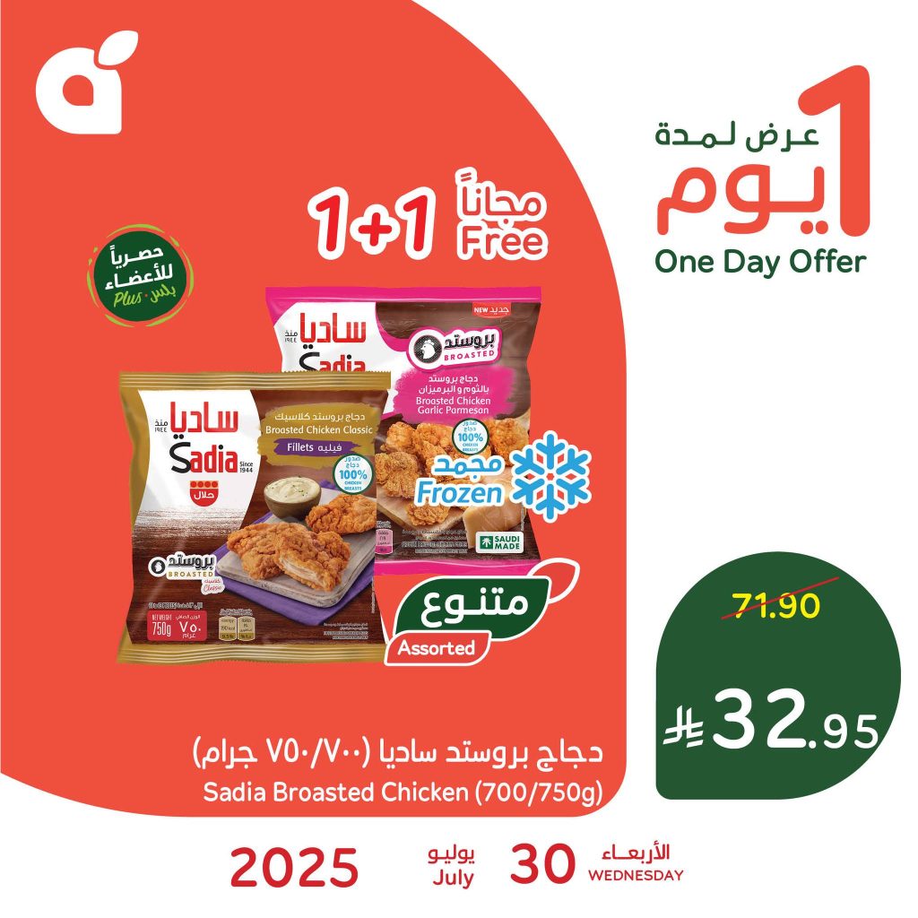 - سعر دجاج بروستد ساديا 700/750 جم بـ 33 ريال سعودي