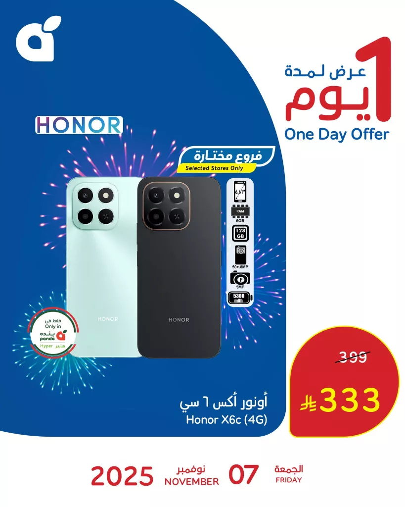 بنقدم ليكم اليوم احدث عروض بنده بتاريخ الجمعة 7-11-2025 و بتحتوي علي جوال اونور اكس سي و بيمتلك مواصفات رائعة من حيث الشكل و الرامات و اللون و قوة الاداء و دقة الكاميرا و غيرها و بتتميز بانها عرض حصري متاح اليوم فقط و باسعار مناسبة للجميع فقط ابقوا معنا ليصلكم كل جديد عن عروض السعودية .