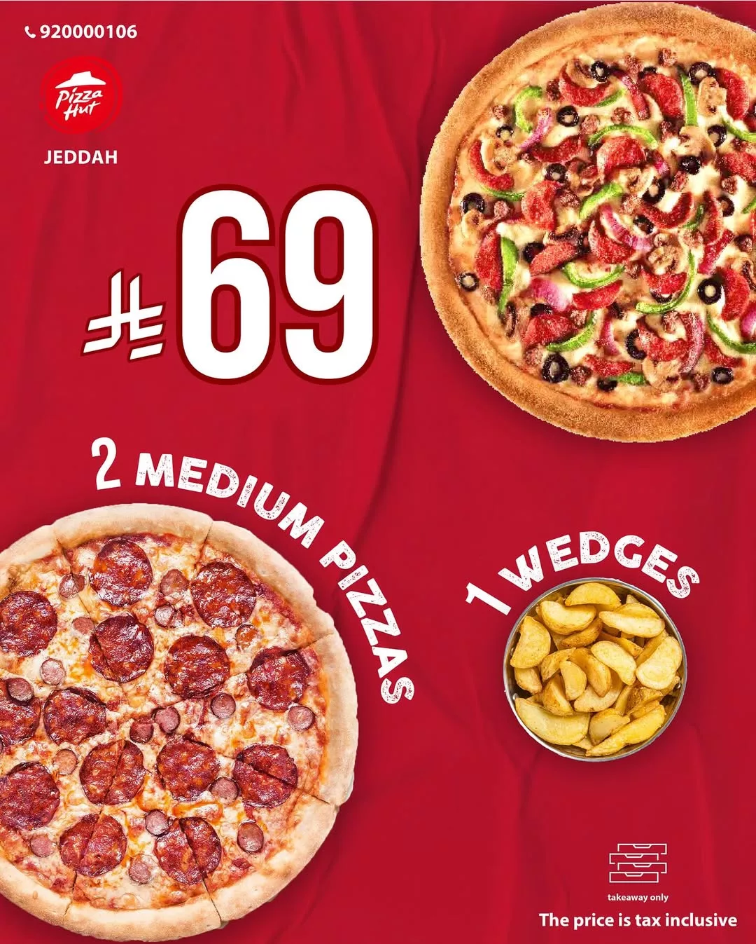 عرض بيتزاهت جدة 2 بيتزا وسط وويدجز بسعر 69 ريال فقط اشهى الوجبات في بيتزا هت السعودية