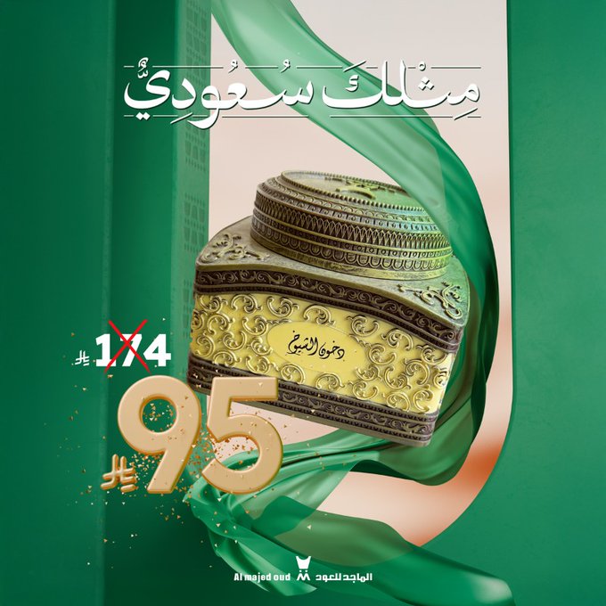 عرض الماجد للعود الجديد بمناسبة اليوم الوطني السعودي على العطور على دخون الشيوخ وهو متاح الان بخصم قوي حيث ان السعر القديم كان 144 ريال سعودي و لكن اصبح بـ 95 ريال فقط لا تفوتوا هذه العروض الحصرية و استفيدوا من احتفالات اليوم الوطني.