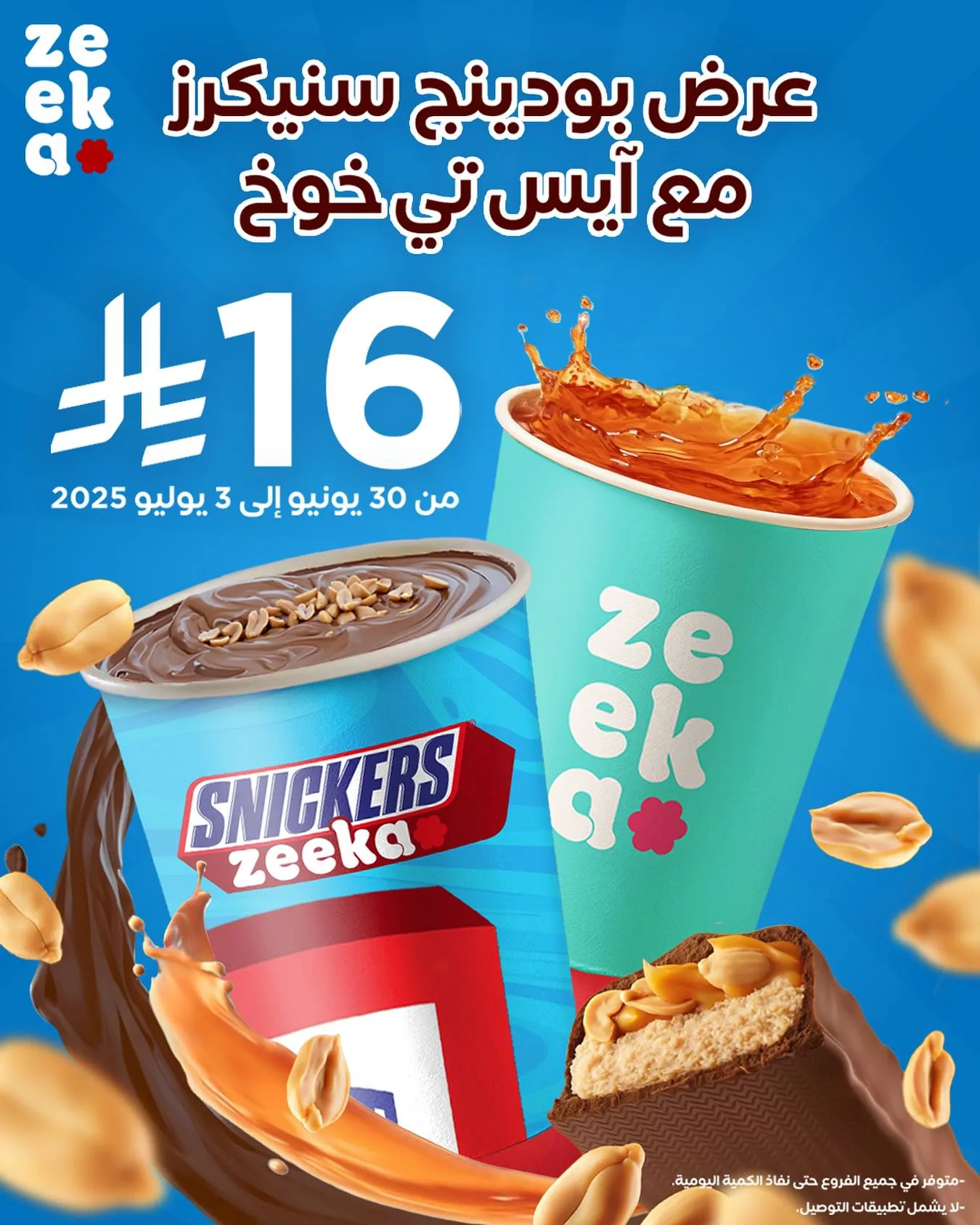 - كوب بودينج سنيكرز: حلوى بودينج بنكهات الشوكولاتة الغنية ومغطاة بزبدة الفول السوداني مع مكسرات محمصة من نوعية سنيكرز الشهيرة، يقدم في عبوة مزينة بشعار Snickers zeeka