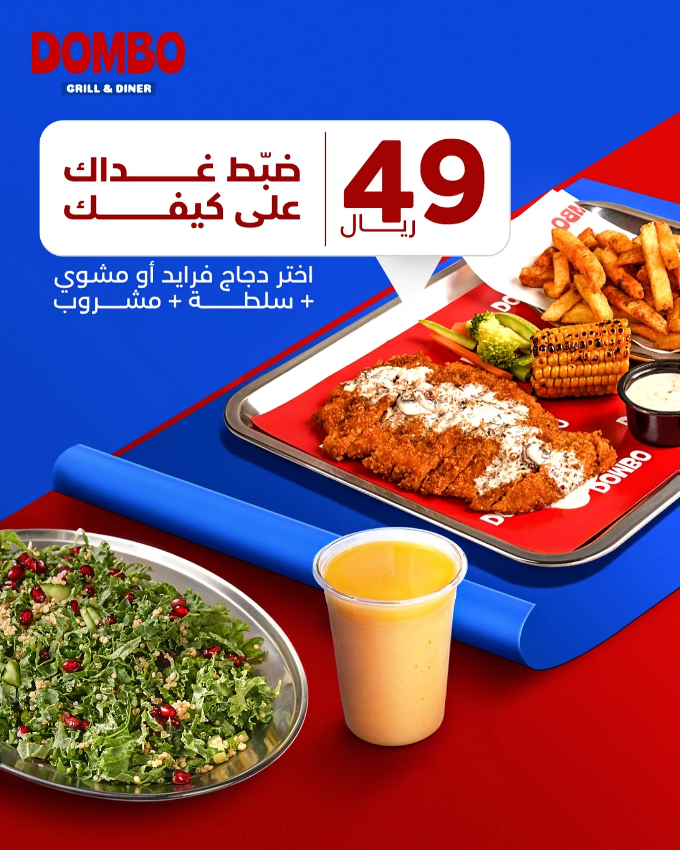 كل ذلك بسعر 49 ريال فقط لتستمتع بوجبة شهية ومتنوعة تناسب جميع الأذواق