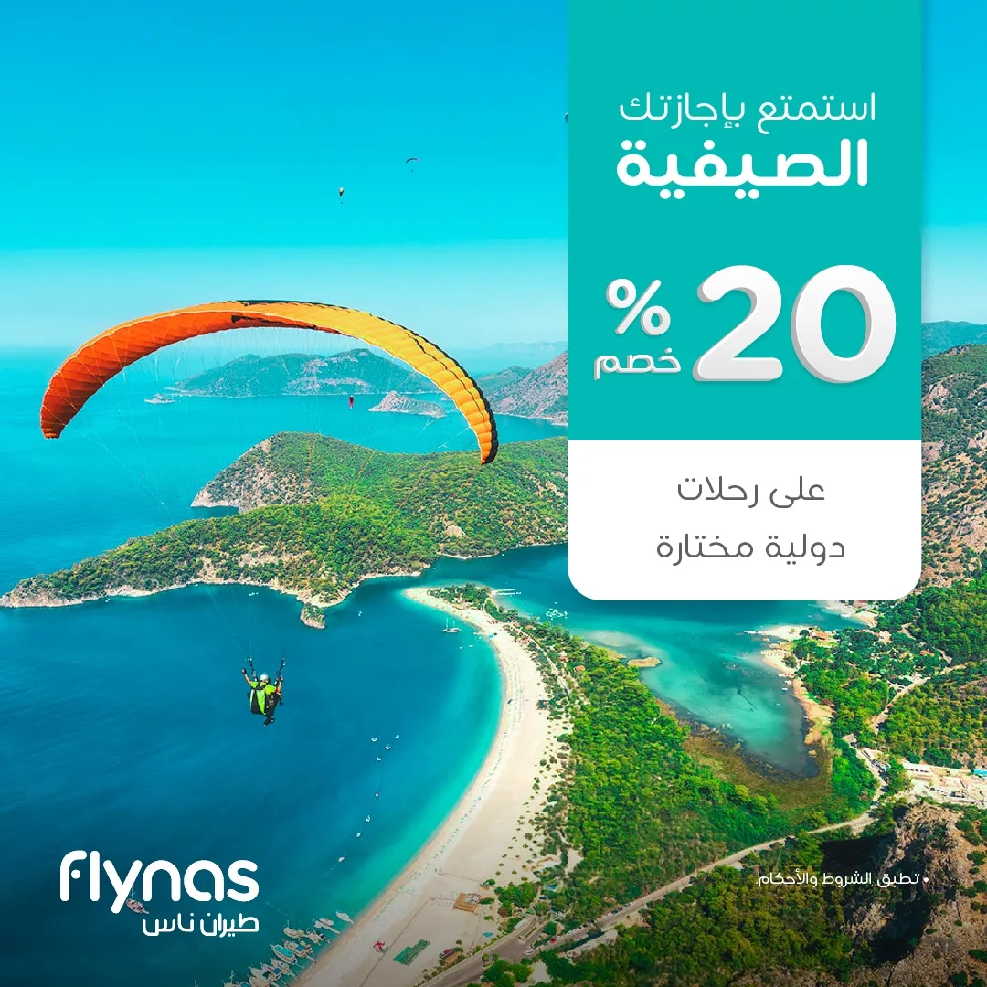 - الحجز عبر الموقع الرسمي: flynas.com/ar/flights-20-off