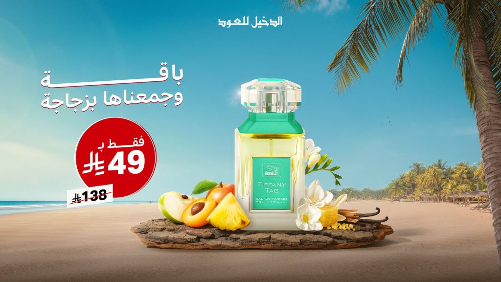 عرض الدخيل للعود على عطر تيفاني تاغ الذي يجمع بين عبق الفواكه ولمسة الأنوثة برائحة منعشة وراقية، ليمنح كل من يختاره تجربة مختلفة عن أي عطر آخر بسعر 49 ريال سعودي فقط لا تفوتوا افضل العطور الصيفية من الدخيل للعود