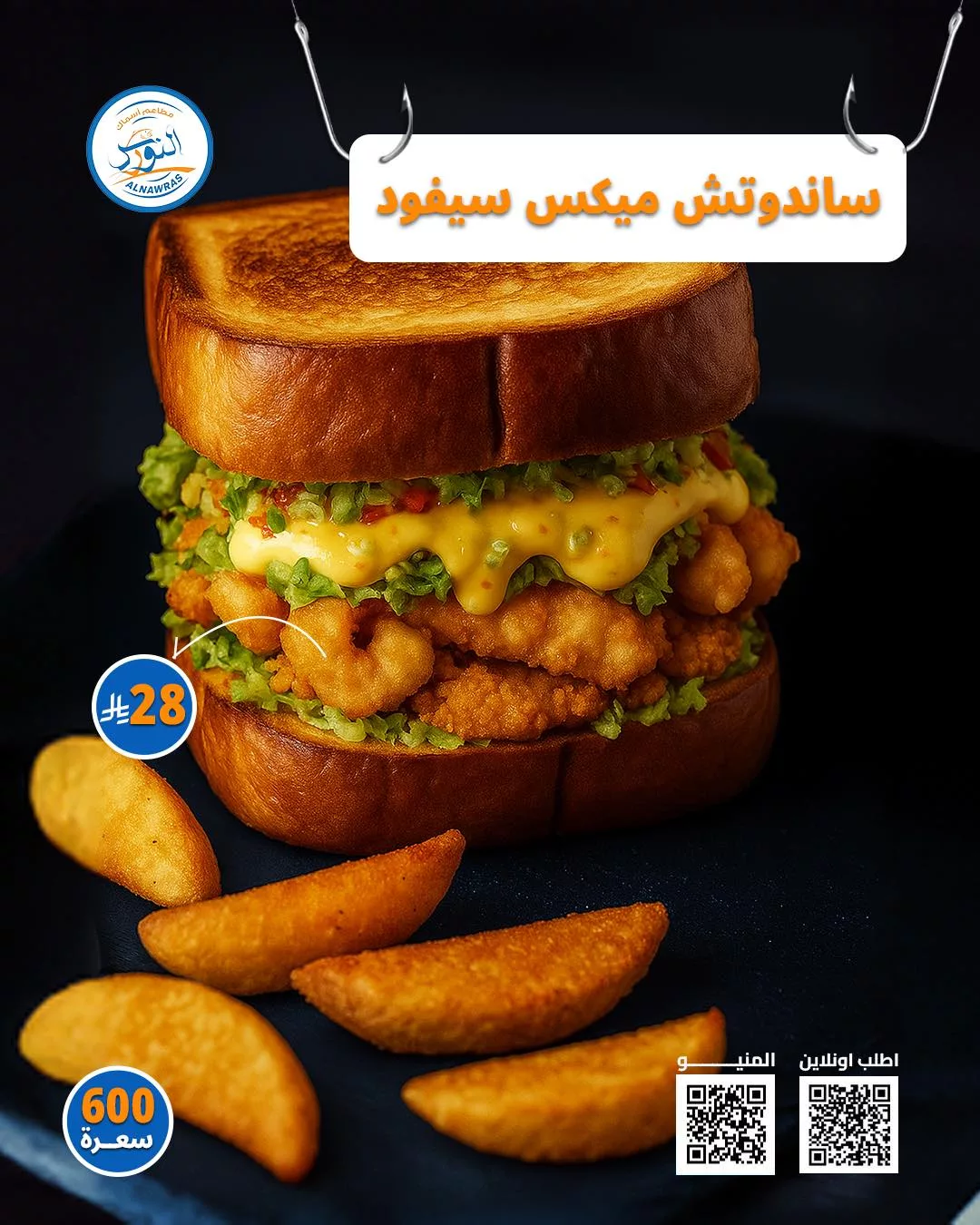 عروض المطاعم في السعودية تشهد دائمًا تنافسًا قويًا لجذب الزبائن عبر ابتكارات مميزة ومذاقات لا تُقاوم، ومن بين هذه العروض البارزة يظهر عرض “خصم السهرانين” من مطاعم النورس للمأكولات البحرية كخيار لا يُفوّت لعشاق الساندوتشات البحرية والمقلية، حيث يقدم تجربة طعام فريدة بمذاقات جمبري، فيليه، وميكس سي فود الفاخرة بأسعار منافسة مع عرض مغري يتضمن الحصول على ساندوتش مجاني عند شراء أي ساندوتش من القائمة