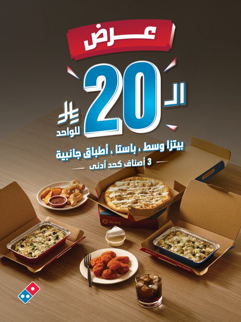عرض مطعم دومينوز بيتزا السعودية الـ 20 ريال للواحد في يوم البيتزا العالمي اطلب عرض العشرين عرض يعطيك افضل انواع البيتزا و الوجبات بسعر 20 ريال فقط متوفره في جميع فروع مطعم دومينوز بيتزا السعودية