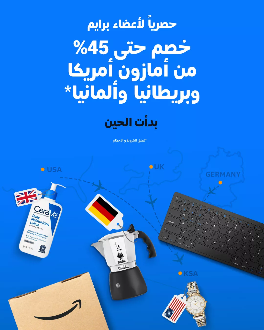 خصومات تصل حتى 45% على مجموعة من المنتجات العالمية المختارة من أمازون أمريكا، بريطانيا، وألمانيا، وهي متاحة فقط لأعضاء برايم في السعودية. العروض تشمل فئات متنوعة من المنتجات التي تلبي مختلف الأذواق والاحتياجات، ومن أبرزها: