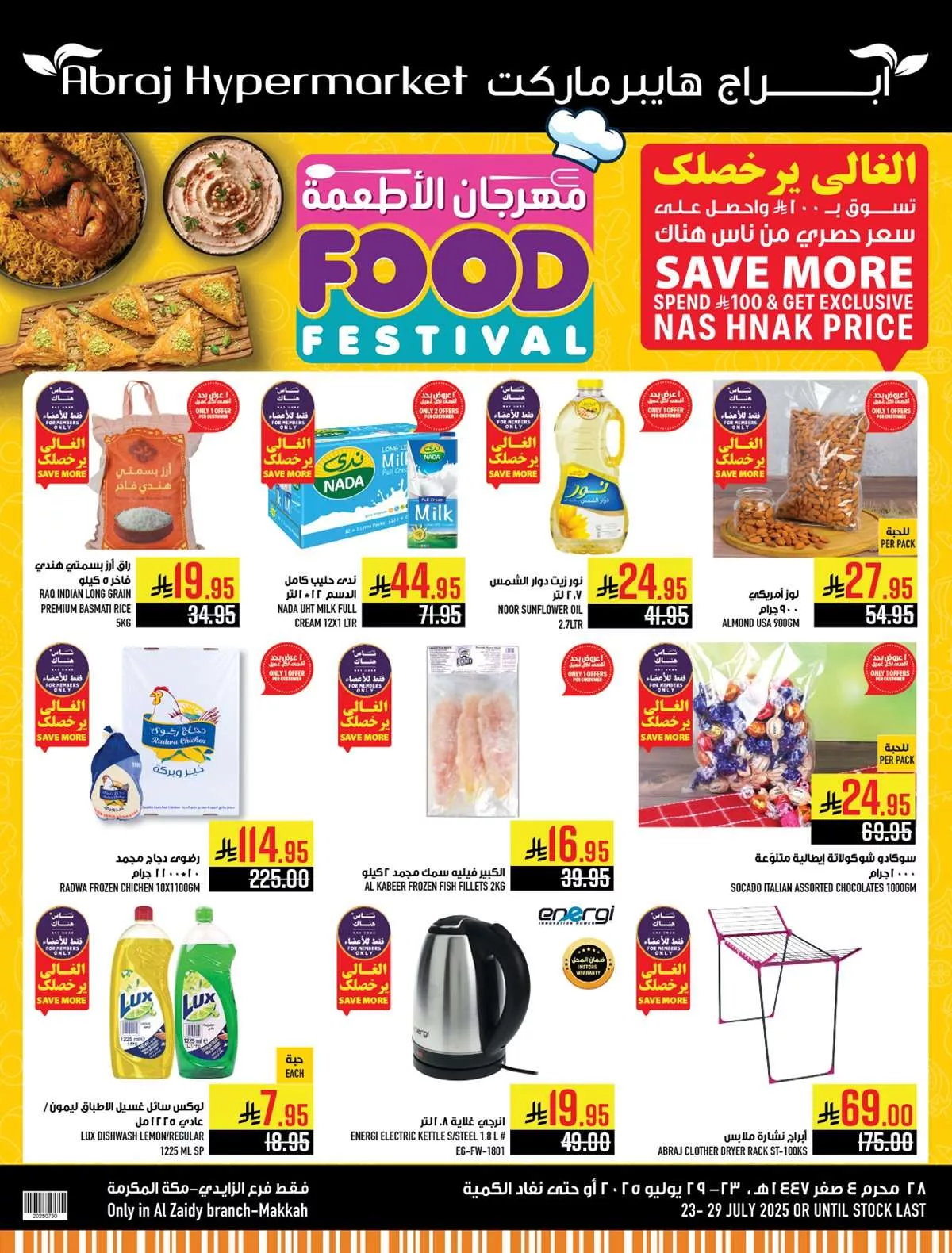 عروض أبراج هايبر ماركت الأسبوعية الأربعاء 23-7-2025 تشمل الزيوت النباتية الخفيفة وصوصات الطهي الدولية الفواكه المجففة كالكرز والتوت البري و المعلبات المتنوعة و كذلك ايضا تضم أجهزة منزلية سهلة الاستعمال مثل المراوح المحمولة و سخانات الماء الصغيرة و محضرات الطعام متعددة الاستعمال تابعونا لمعرفة كل جديد
