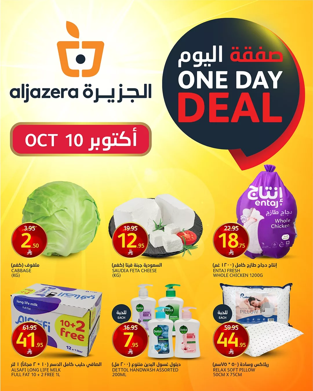 عروض أسواق الجزيرة اليوم الجمعة 10 أكتوبر 2025 تقدم اختيارات من المنتجات الطازجة والحليب والأجبان والدواجن بالإضافة لمستحضرات الغسيل اليدوي والوسائد الصحية و باسعار لا تقبل المنافسة تابعونا علي موقع عروض توداي ليصلكم كل جديد عن عروض السعودية في تغطية حصرية و مباشرة